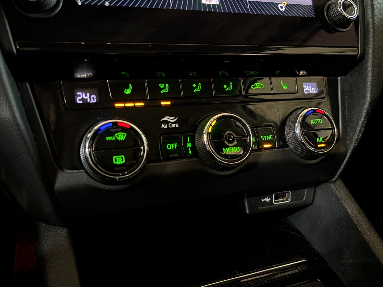 – USB-A stik både for og bag (mobilopladning)